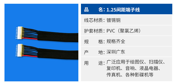 1.25間距端子線鍍金端子 喇叭連接端子線