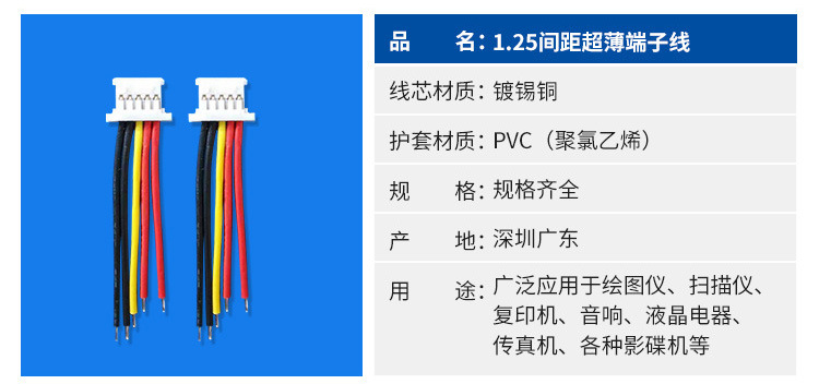 • 1.25間距 端子線插板后焊接主板線材