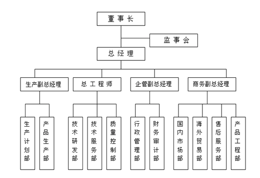 公司的架構(gòu)完全依照現(xiàn)代企業(yè)組織結(jié)構(gòu)和自身的生產(chǎn)經(jīng)營(yíng)情況整合而成,同時(shí)又充分發(fā)揮了各個(gè)合作企業(yè)獨(dú)自的強(qiáng)項(xiàng),成為優(yōu)勢(shì)互補(bǔ),強(qiáng)強(qiáng)聯(lián)手的現(xiàn)代化大型科技企業(yè),并貫徹ISO9001質(zhì)量體系。公司的架構(gòu)主要分為四個(gè)部分,實(shí)現(xiàn)了生產(chǎn)、研發(fā)、管理、銷售并舉的良好動(dòng)作體系。